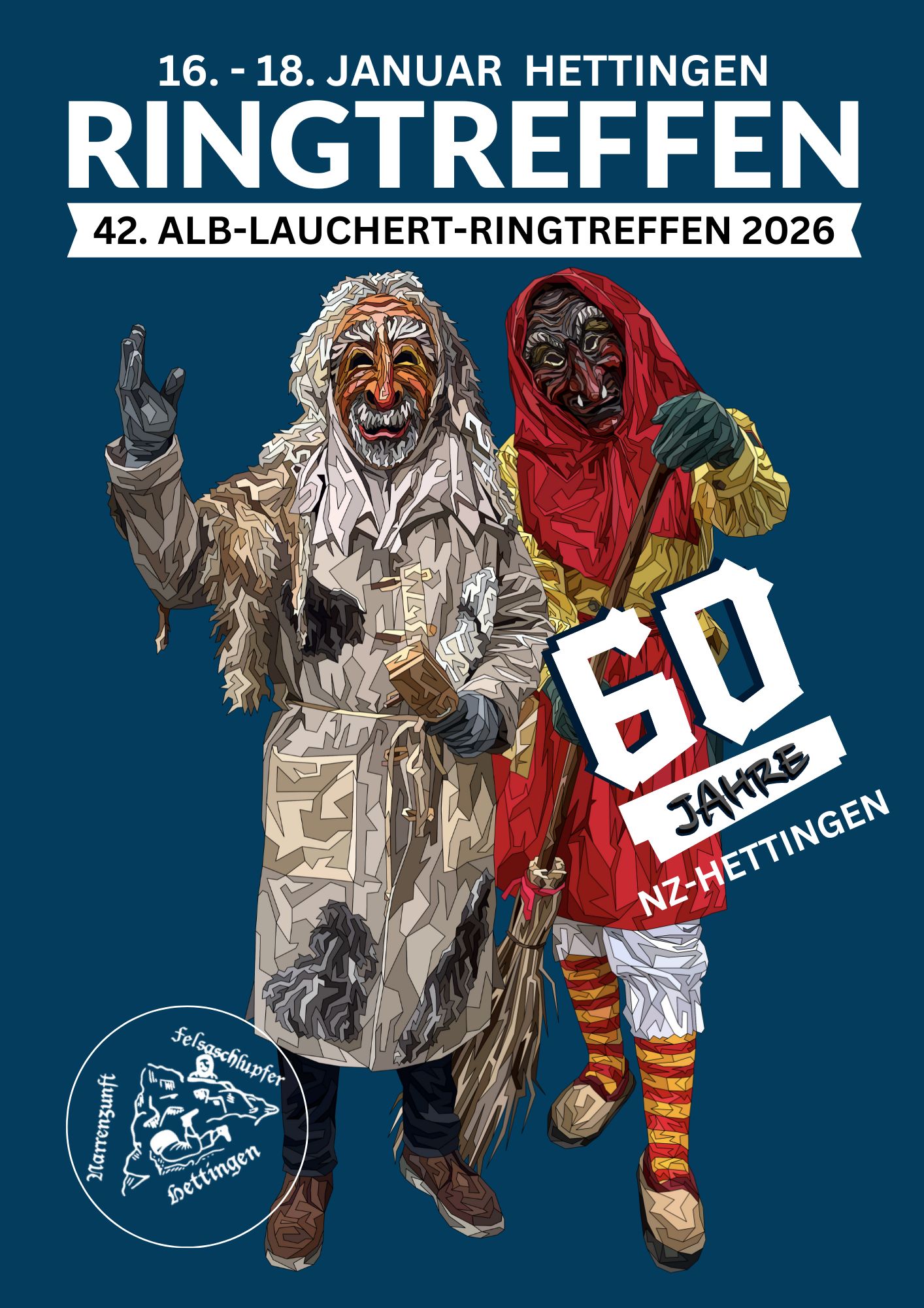 Die Narrenzunft Hettingen freut sich, euch zum 42. Alb-Lauchert-Ringtreffen und gleichzeitig zum 60-jährigen Jubiläum unserer Fasnet begrüßen zu dürfen.